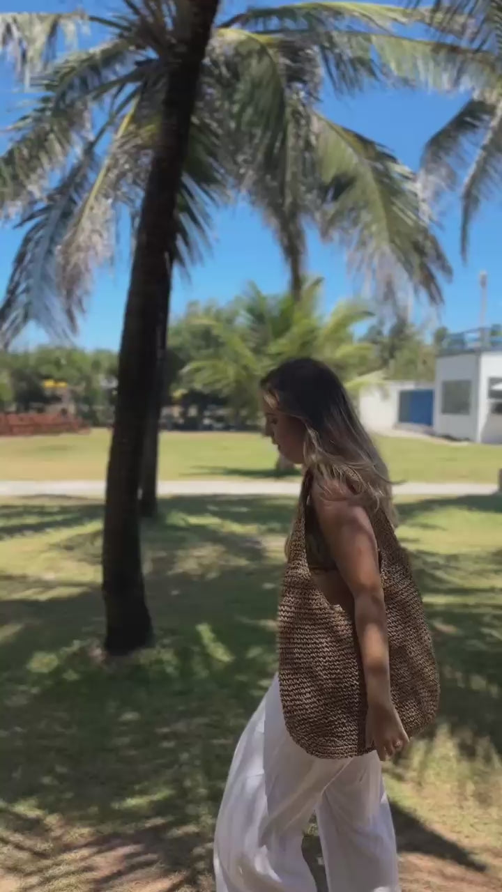 Bolsa Praia Palha Mykonos com Textura Sofisticada