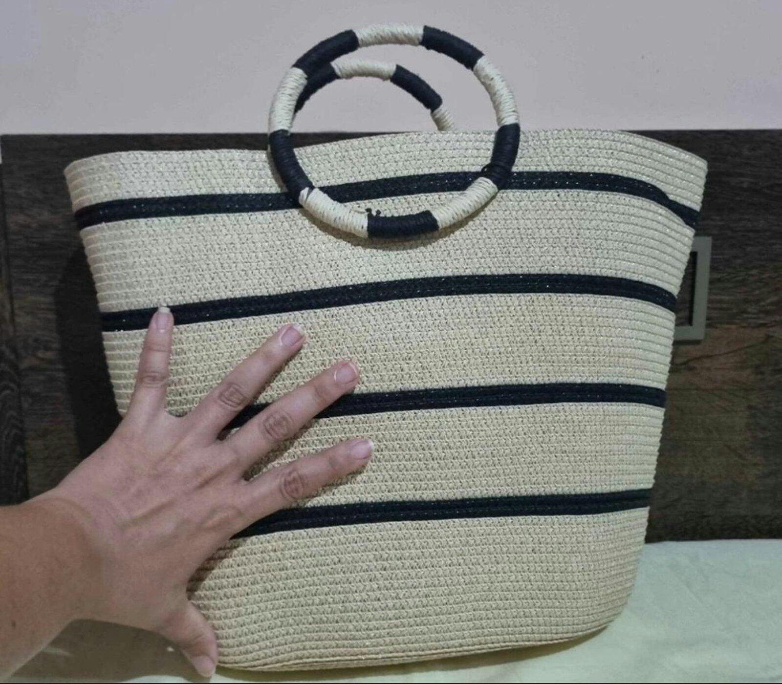 - 1 Bolsa de Palha Riviera Listrada – Alça Redonda Artesanal.